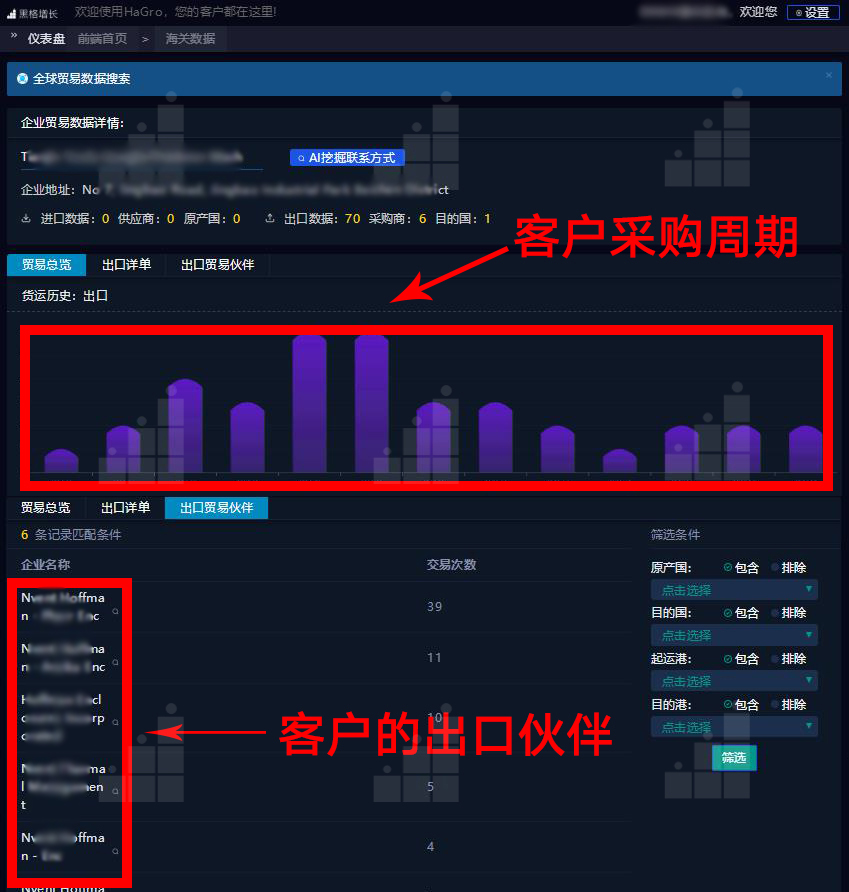 通過海關(guān)數(shù)據(jù)觀察客戶采購周期變化,找到客戶的采購規(guī)律,獲取采購線索,同時進一步了解老客戶的出口情況以及采購詳情,判斷是否可以對老客戶開展多項業(yè)務(wù),以進行多維度的合作,以此來實現(xiàn)客戶資源的最大化利用。