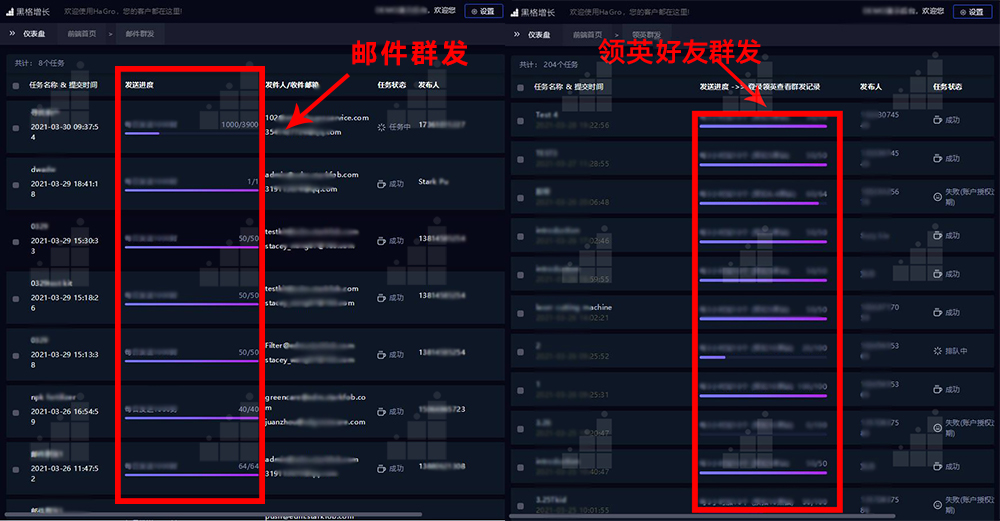 黑格增長的郵件群發(fā)、領(lǐng)英好友群發(fā)等群發(fā)功能除了適用于對新客戶的開發(fā),盤活老客戶也是不錯的選擇,通過自定義消息模板將活動信息群發(fā)給目標(biāo)客戶群體,對客戶進行高效的自動化營銷。