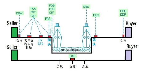 注意:期間賣方必須支付將貨物運至目的地的運費,買方承擔賣方交貨之后的一切風險和額外費用。