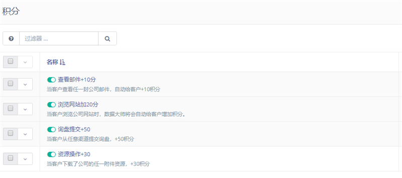 像非洲,印度的客戶,談單到成單可能需要很長的時間,因?yàn)樾詢r比在他眼中最重要。那我們?nèi)绾魏Y選出互動頻繁卻遲遲不下單的客戶呢?數(shù)據(jù)大師積分自動觸發(fā)輕松解決你的難題。