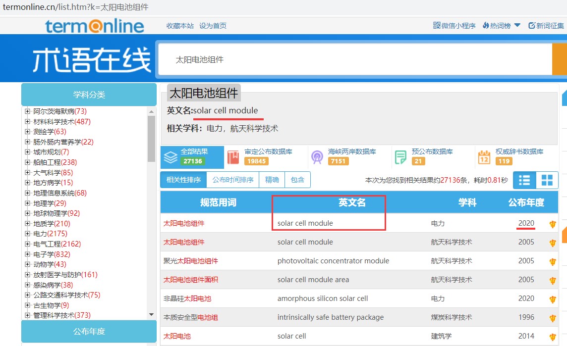 不知道各位有沒(méi)有遇見(jiàn)過(guò)這樣的煩惱,對(duì)于專(zhuān)業(yè)領(lǐng)域的某些名稱(chēng)不太了解,也不敢確定它在國(guó)際上的命名到底是什么,那么小編再推薦一款術(shù)語(yǔ)查詢(xún)工具:
