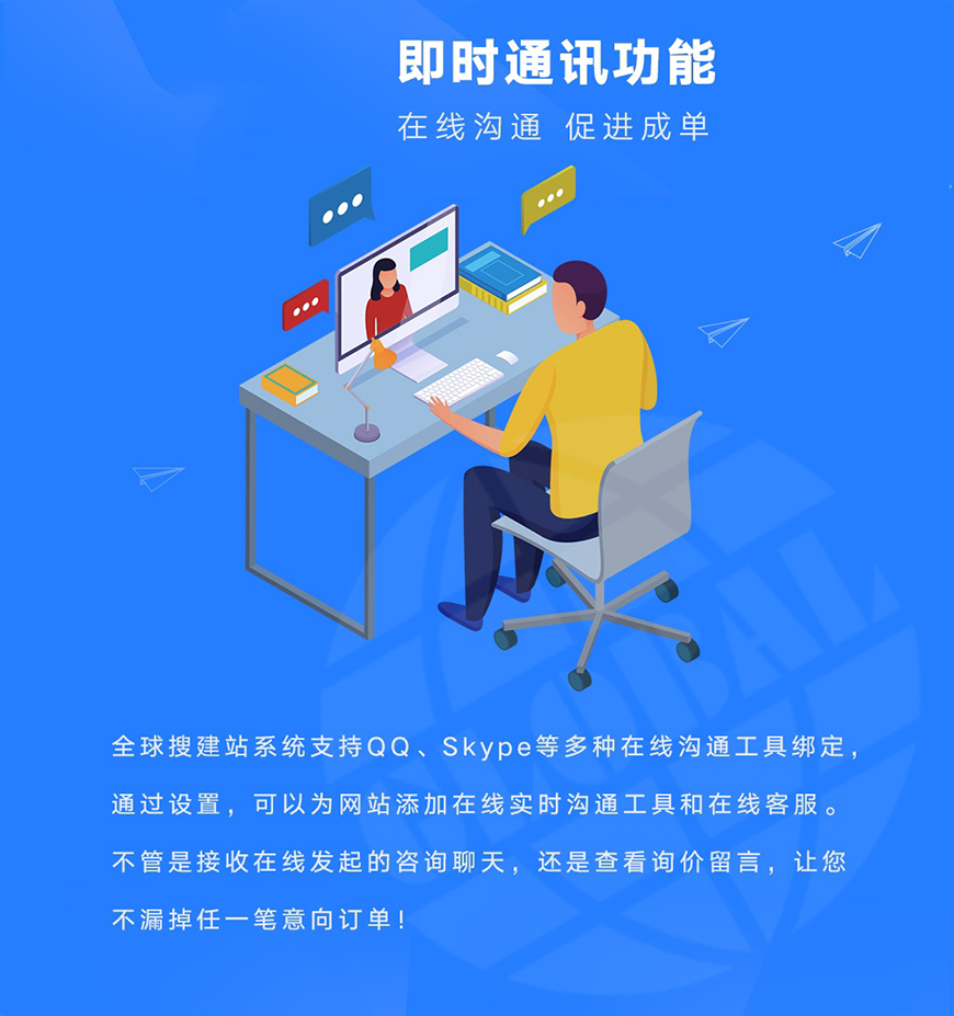 傳統(tǒng)的獨立站,需要客戶發(fā)送詢盤,然后業(yè)務員再通過郵件的方式與客戶取得聯(lián)系,這樣的一番操作下來,客戶又會去撩撥別的廠商了,而在線聊天可實時追蹤客戶正在看的網(wǎng)站,有針對性的做產(chǎn)品服務;聊天結(jié)束后,你還可以將你們的聊天記錄發(fā)送至你的郵箱,避免內(nèi)容遺忘。