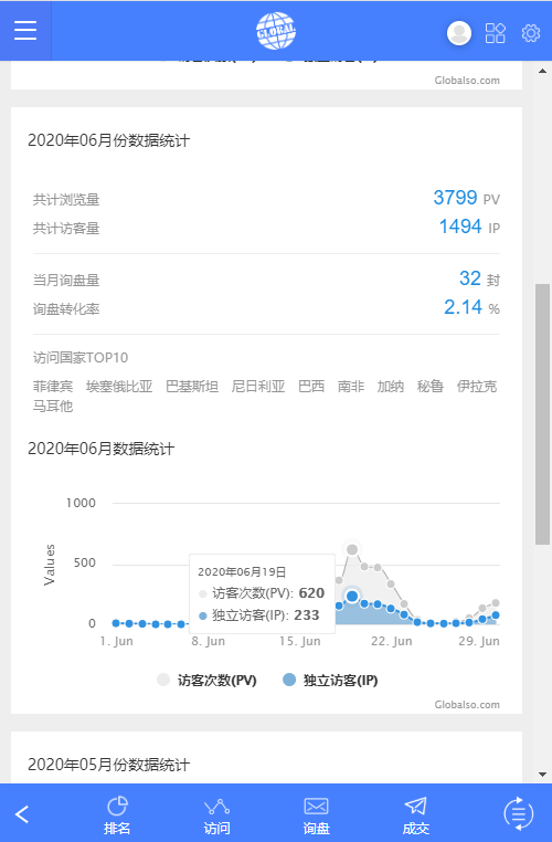 該企業(yè)與全球搜有著多年的合作,5月精準(zhǔn)詢(xún)盤(pán)達(dá)到126封,6月94封。