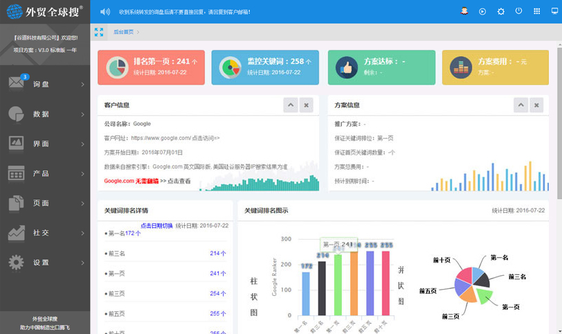 結合大數(shù)據(jù)技術、人工智能、搜索算法、數(shù)字營銷和社交營銷的外貿(mào)整合營銷一站式解決方案,通過智能多語言建站和搜索引擎SEO技術保證搜索引擎首頁關鍵詞數(shù)量,